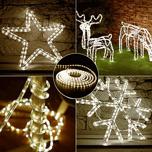2-Draht LED Leuchten Seil: Warmweiß Lichtkabel ist stilvoll und schön. Es kann zur Dekoration und Beleuchtung verwendet werden. Das Lichtseil kann geschnitten werden, und es wird alle 1 Meter eine Schnittmarke geben, das Schneiden an der Schnittstelle beschädigt die anderen Teile der Lichtleiste nicht.