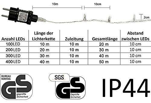 Details: 100/200/300/400er Led Lichterkette Strombetrieben mit Stecker Außen und Innen für Garten Hochzeit Weihnachten Party Warmweiß Gresonic (Warmweiss, 100LED)