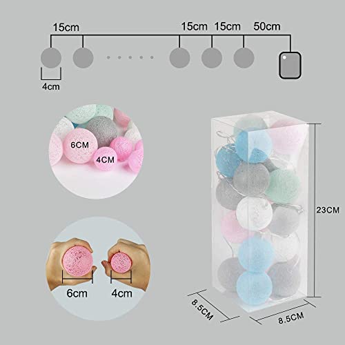 💡【lichterkette innen】- Der Abstand zwischen den beiden Lichtern beträgt 15 cm, Der Durchmesser des cotton ball beträgt 4cm. Schaffen Sie eine sofortige Atmosphäre für Zimmer und Innen.