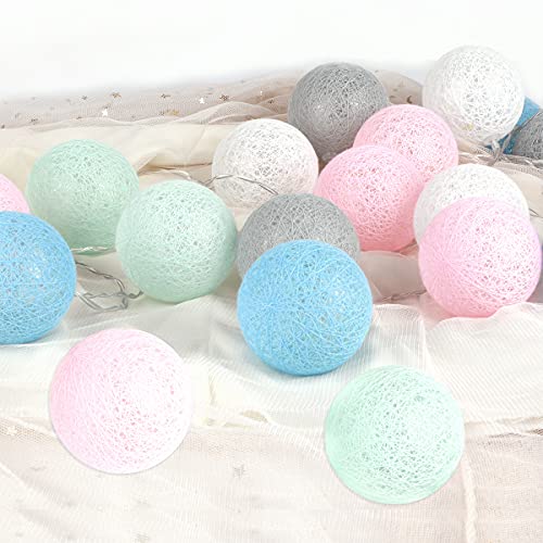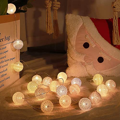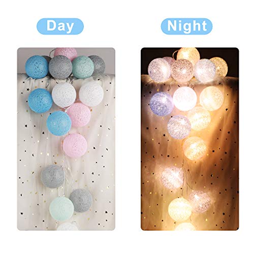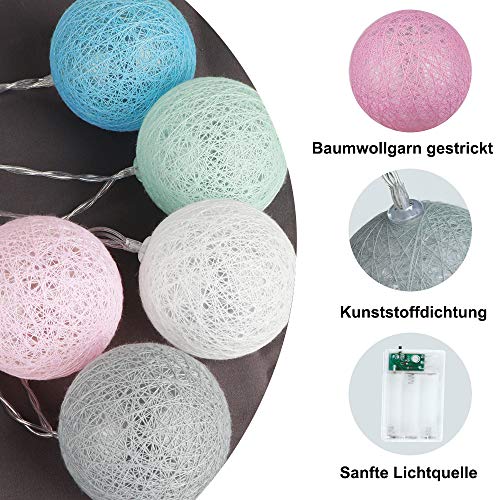 Details: KWODE Lichterkette Cotton Ball, LED Cotton Bälle Light mit Batteriebetrieben, 20er 3.5M Bunt Kugel Kette für Innen…
