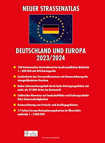 Neuer Straßenatlas Deutschland/Europa 2023/2024: Deutschland 1 : 300 000 . Europa 1 : 3 000 000. Praktisch mit…