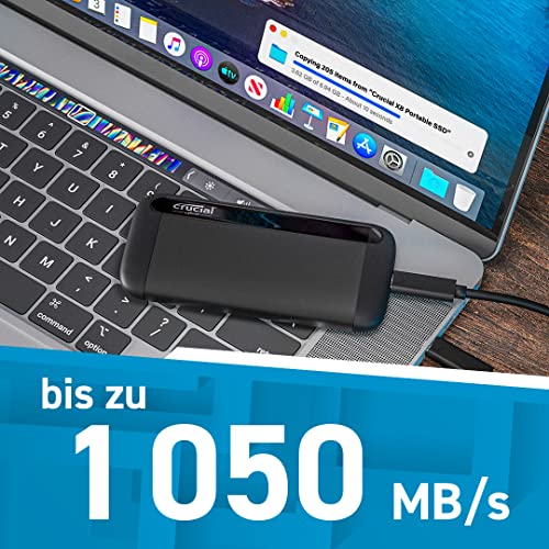 Crucial X8 1TB Portable SSD – Bis zu 1050MB/s – PC und Mac – USB 3.2 Externes Solid State Drive – CT1000X8SSD9