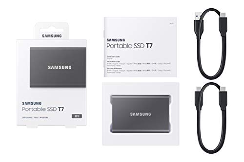Samsung Portable SSD T7 (MU-PC1T0T/WW), 1TB, USB 3.2 Gen.2, 1.050 MB/s Lesen, 1.000 MB/s Schreiben, externe Festplatte…