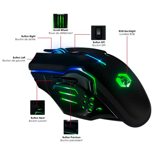 KABELLOSE RGB-MAUS : Genießen Sie die kabellose Bewegungsfreiheit und die RGB-Hintergrundbeleuchtung. Mit seiner speziellen DPI-Taste stellen Sie die Empfindlichkeit des optischen Sensors ein: 1200, 2400 oder 4800 DPI