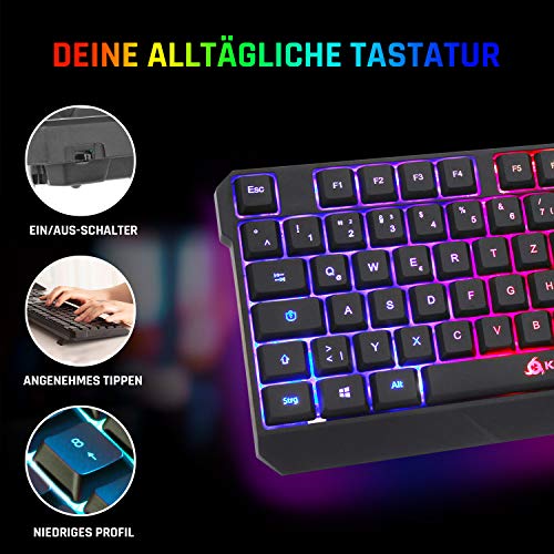 Details: KLIM Chroma Gaming Tastatur QWERTZ DEUTSCH mit Kabel USB – NEU 2023 – Langlebig, Ergonomisch, Wasserdicht, Leise Tasten…