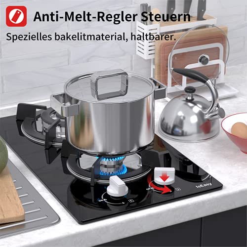 ❤️Langlebige Qualität❤️ — Die schmelzfesten knöpfe bestehen aus bakelit und der schwere gusseiserne pfannenträger ist stabiler. Das glas gaskochfeld camping einbau könnte das gewicht der meisten töpfe tragen. Dieses 2 glas kochbrenner gaskochfeld ist mit allen arten von kochgeschirr kompatibel.