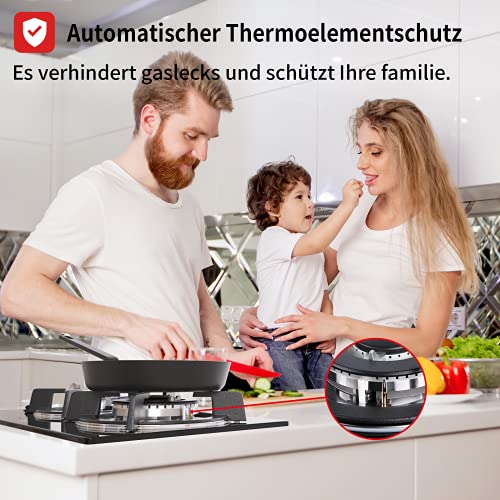 ❤️Sicher & Zuverlässig❤️ — Das domino glas gaskochfeld verfügt über eine thermoelement-Flammenausfallerkennung. Es schaltet das gas automatisch ab, wenn keine flamme erkannt wird. IsEasy gaskochfeld könnte die sicherheit von Ihnen und Ihrer familie.