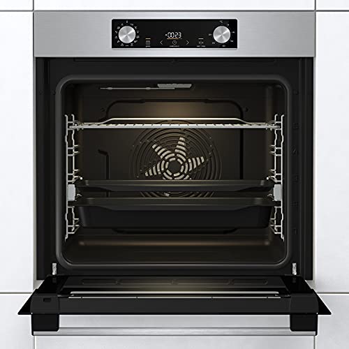 Details: Gorenje BOS 6737 E13X Einbau-Backofen / 77 Liter/Heißluft/ExtraSteam/GentleClose & Open/EcoClean/Air Fry/PizzaMode/PerfectGrill/Teleskopauszüge/Inox-Look, Grau