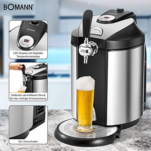 Details: Bomann® Bierzapfanlage für alle handelsüblichen 5 Liter Bierfässer, Bierzapfanlage 5 Liter mit Kühlung von 2°C-12°C, Zapfanlage mit LED-Display zur komfortablen Temperaturreglung – BZ 6029 CB