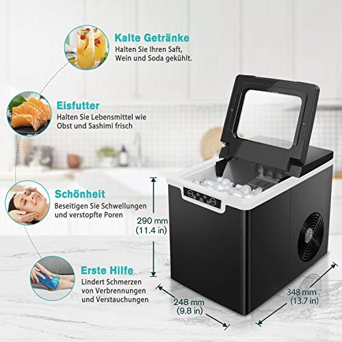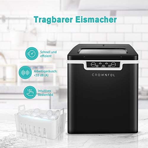 Details: CROWNFUL Eiswürfelbereiter Eismaschine Eiswürfelmaschine, 9 Eiswürfel bereit in 8-10 Minuten, 26lbs Kugel Eis Cubes in 24H, Elektrische Eismaschine mit Schaufel und Korb – schwarz