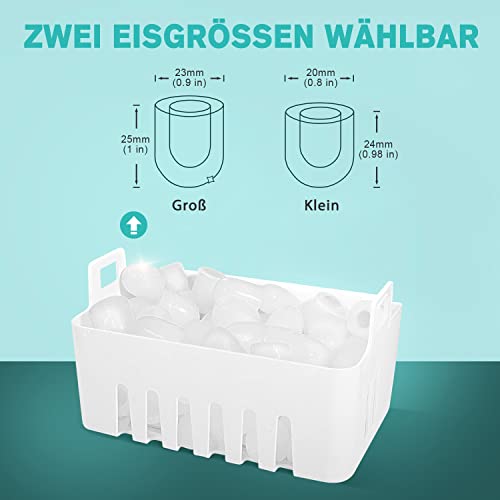 ZWEI EISGRÖSSEN WÄHLBAR: Diese Eismaschine hat zwei Eisgrößen zur Auswahl. Verschiedene Eiswürfelgrößen eignen sich für eine Vielzahl von Getränkebedürfnissen. Große Eiswürfel lassen sich nicht leicht schmelzen und kleine Eiswürfel sind ideal, um Getränke schnell zu kühlen. Der einfache und kompakte Stil ist perfekt für Zuhause/Party/Büro/Wohnmobil.