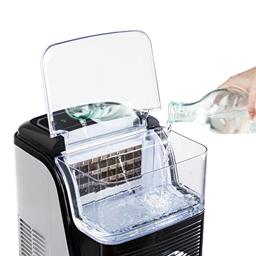 Details: Klarstein Eiswürfelmaschine Klein, 2,5L Eiswürfelbereiter, Eiswürfelmaschine für 15kg Kleine & Große Eiswürfel, Schnelle Mini-Eiswürfelmaschine mit Alarm, Eiswürfelbereiter Selbstreinigend