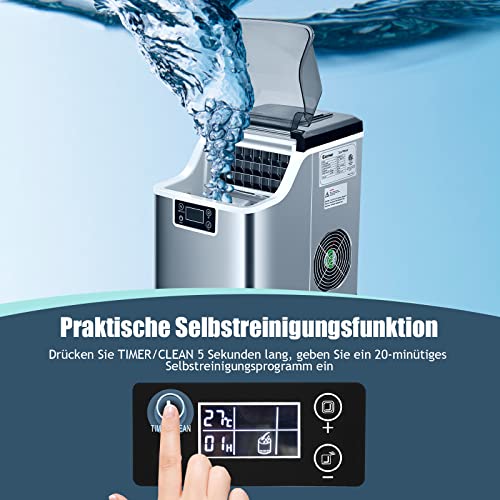🧊Mit Automatischer Reinigungsfunktion: Diese Eiswürfelmaschine hat eine automatische Reinigungsfunktion, bei der Sie nur fünf Sekunden warten müssen, nachdem Sie den Knopf gedrückt haben, und sie beginnt, sich selbst zu reinigen, was Ihnen großen Bequemlichkeit bieten kann.