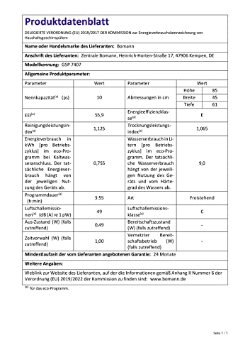 ![Bomann GSP 7407 Spülmaschine, Stand/Unterbau, 45 cm Ausführung, 10 Maßgedecke, 6 Programme, LED- Display/Kontrollanzeigen, Reinigungstemperaturen 45°C - 70°C, schwarz [Energieklasse E] – Bild 8](https://m.media-amazon.com/images/I/51KYe7eFHiL.jpg)