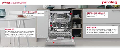 Details: Privileg RUO 3T133 A F X Unterbau-Geschirrspüler 60 cm / 14 Maßgedecke / Fast&Clean 28’ / Auto Door / Push&Go / Option Multizone / Startzeitvorwahl / Vollwasserschutz [Energieklasse D]