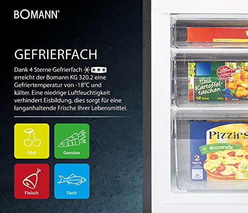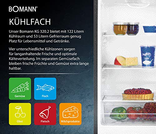 Details: Bomann KG 320.2 Kühlgefrierkombination, Kühl-Teil 122 Liter, Gefrierfach 53 Liter, LED Innenraumbeleuchtung…