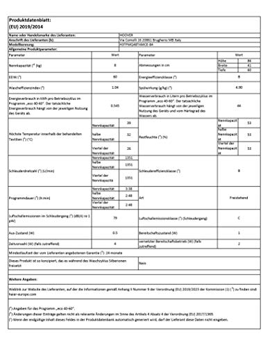 Details: Hoover H-WASH 300 H3TFMQ48TAMCE-84 Waschmaschine Toplader / 8 kg / 1400 U/Min / BPM Inverter Motor / Power Care System / All in One Programm / Slow Motion Öffnungsmechanismus / deutsche Bedienblende