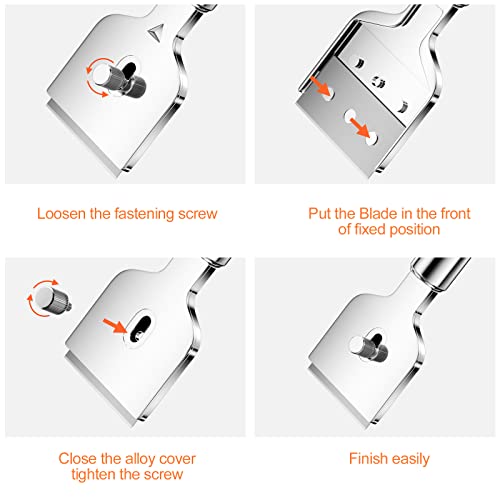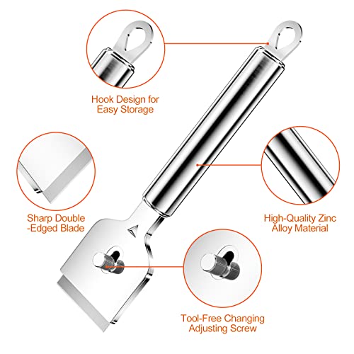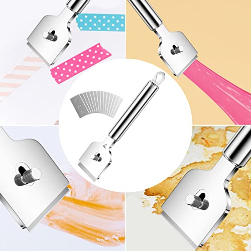 【Hohe Qualität】 Der Schaber besteht aus hochwertigem Vollmetall, das stark und langlebig ist, sich nicht leicht verformen oder brechen lässt, wodurch der Schabevorgang schneller und einfacher wird und mit 14Pcs Ersatzklingen.