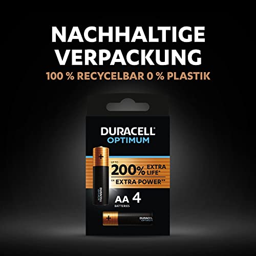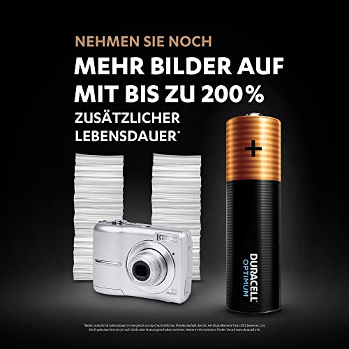 Duracell Optimum AA-Batterien bieten Bis zu 200 Prozent zusätzliche Lebensdauer in bestimmten Geräten oder Extra Power in anderen Geräten – so gehen Sie sicher, Das Bestmögliche aus Ihren Geräten herauszuholen