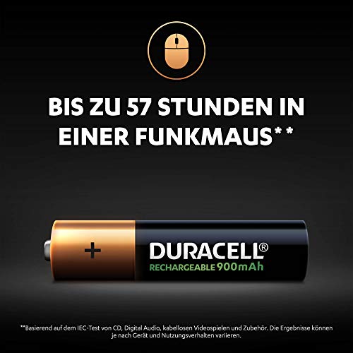 Duracell Rechargeable AAA 900 mAh Micro Akku Batterien HR03, 4er Pack