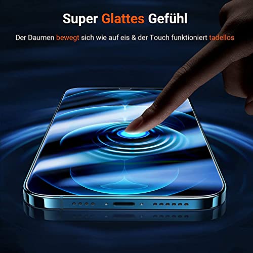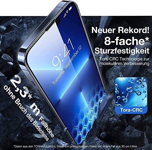Details: TORRAS Militärische Vollbild für Panzerglas für iPhone 12/12 Pro Schutzglas (9H Härte Full Screen) Unzerstörbare 3D Schutzfolie mit Installationswerkzeug (2 Stücke)