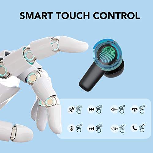 【Kopplung in einem Schritt und einfache Bedienung】 Nehmen Sie 2 earpods aus der Ladebox, sie schalten sich automatisch ein und verbinden sich mit dem zuvor gekoppelten Gerät. Touch-Steuerung ist bequemer und einfacher. Sie können ganz einfach Titel überspringen/die Lautstärke ändern/Musik abspielen oder anhalten/den Sprachassistenten aktivieren/einen Anruf annehmen oder beenden oder ablehnen.