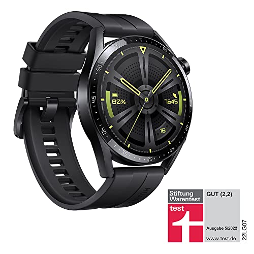 Details: HUAWEI WATCH GT 3 46mm Smartwatch, lange Akkulaufzeit, ganztägige SpO2-Überwachung, KI-Lauftrainer, genaue Herzfrequenzüberwachung, 100+ Trainingsmodi,Deutsche Version, Schwarz