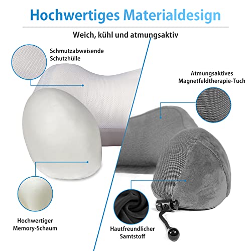 EINZIGARTIGES DESIGN – Unser produkt welches ein sehr ergonomisches und gesundheitlich förderndes Design aufweist. Es hat eine gute elastische Wirkung, wie ein Bettkissen, wenn Sie sich auf die Sitze von Flugzeug, Auto oder Bus lehnen, werden Sie den beispiellosen Komfort fühlen. Unser Kissen kann Schmerzen der Halswirbelsäule mit effektiver zervikaler Traktion verhindern und verbessern, sowie falsche Körperhaltung korrigieren.