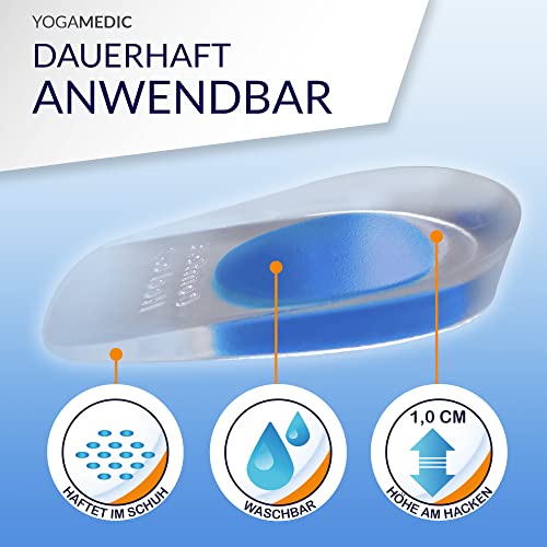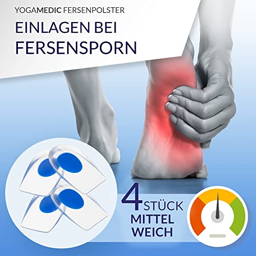 YogaMedic Schuhe Fersenpolster für Schuhe, Fersensporn 4 Stück orthopädische Geleinlagen- Fersenkissen für Achillessehne, Plantarfasziitis, Schuh Fersenschmerzen Behandlung Einlage (Gr. 40-45)