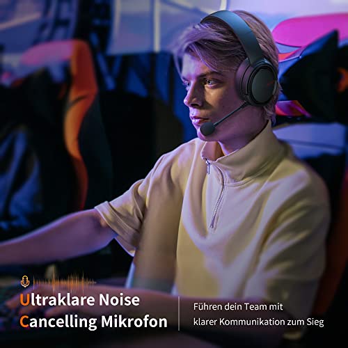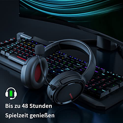 BINNUNE Gaming Headset Wireless mit Mikrofon für PC PS4 PS5 Playstation, Bluetooth Gaming Kopfhörer Kabellos, 48 Stunden Akkulaufzeit, 2.4GHz, 3,5mm Eingang – Schwarz