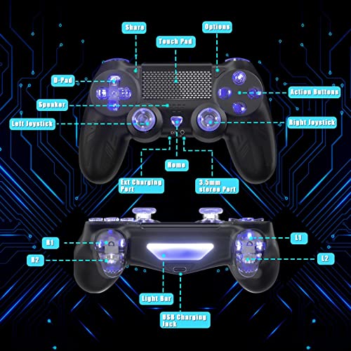 【Wechselbarer LED 7 Farben RGB Tasten】New Added Fun Features unserer ps4 controller.Drücken Sie die L3+R3 Taste für 3s, der Controller wird für 1s vibrieren, was anzeigt, dass die Lichtfarbe geändert werden kann, drücken Sie kurz L3, um die Lichtfarbe zu ändern, drücken Sie R3 zur Bestätigung, sieben Farbwechsel: blau, rot, grün, rosa, orange, cyan, lila.