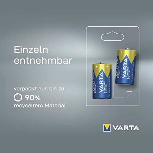VARTA Batterien C Baby, 4 Stück, Longlife Power, Alkaline, 1,5V, ideal für Spielzeug, Funkmaus, Taschenlampen, Made in…