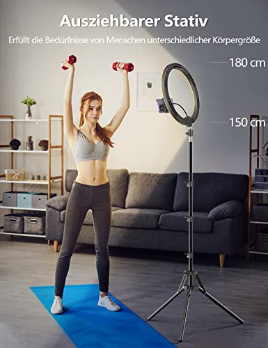 Details: 12,6 Zoll Ringlicht mit Groß Stativ Handy (Gesamthöhe 180 cm), Pnitri Großes Ringleuchte & Selfie-Ringlicht für Live…