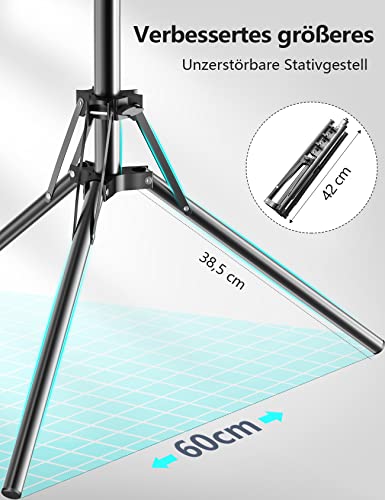 Größeres und stabileres Stativ: Das Pnitri-Stativ ist aus einer hochwertigen Aluminiumlegierung gefertigt. Die Beine des Stativs sind 38,5 cm lang und die Basis des Stativs ist größer als die meisten Stative, was eine stärkere Stabilität und einen besseren Halt bietet. Es wird durch Anziehen der Flügelmuttern gehalten, Höhenbereich ( 45 cm – 150 cm), Mit dem Ringlicht ist die Gesamthöhe 180cm kann besser auf die Bedürfnisse von Menschen mit unterschiedlichen Höhen verwenden.