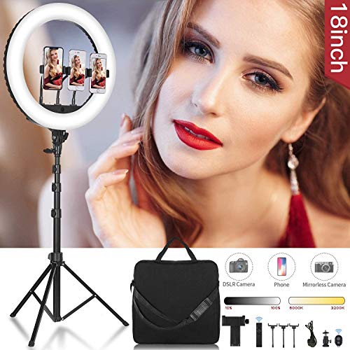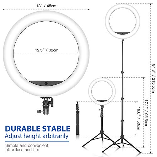 Details: CXYP 18 Zoll LED Ringlicht mit Stativ, Dimmbares Selfie Ringleuchte mit Fernbedienung für YouTube TikTok Videoaufnahmen, Selfie, Live-Stream, Makeup/Fotografie Kompatibel mit Smartphone
