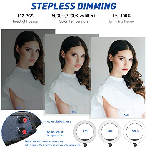 【Ordentliches Licht】 Dimmbereich 10% ~ 100% und Farbtemperatur 3200K ~ 6000K – Einfach mit dem Knopf einstellen, ohne dass zusätzliche Filter installiert werden müssen. Die speziell entwickelte LED-Matrix sorgt für ein anständiges Licht rund um das Motiv und reduziert gleichzeitig scharfe Schatten. Außerdem wird den Augen des aufnehmenden Motivs ein wunderschöner Halo-Lichteffekt hinzugefügt.