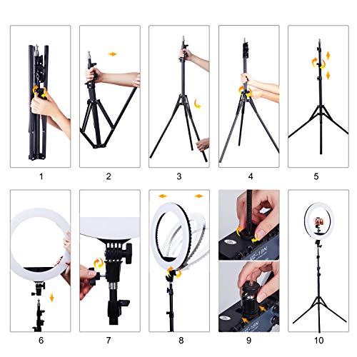 【Klappbarer Stativständer und Universalschraubengröße】 Das ringverstellbare Stativ besteht aus einer hochwertigen Aluminiumlegierung und kann die Höhe von 50 cm bis 170 cm einstellen. Mit dem flexiblen Lampenrohr kann sich die Lampe frei um 360 ° drehen, und die Ringlampe kann sich um 360 ° drehen, sodass sie Ihren Anforderungen in jeder Höhe und in jedem Winkel gerecht wird. Leicht zu tragen, starke Verriegelungsfähigkeit kann beibehalten werden.
