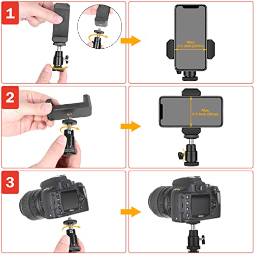 💡【Weit Handy Halterung】 Der Telefonclip kann auf 3.9 Inch (10cm) verlängert werden. Anwendbar auf fast alle Smartphones, entworfen 360°drehbar frei Kugelkopf, in der Lage zu leicht den Winkel Ihres Handys und das LED-Ringlicht anpassen, können Sie nicht nur erhalten ein besserer Blickwinkel für die Präsentation auf Ihrem Telefon, aber auch der beste Blickwinkel für zusätzliches Licht.
