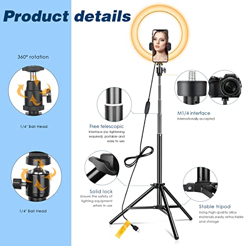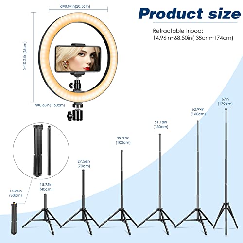 Details: KIBTOY LED Ringlicht 10 Zoll mit 67 Zoll Stativständer & Handyhalter, Dimmbare Tischringlicht für YouTube-Videoaufnahmen, Selfie, Live-Stream, Makeup/Fotografie Kompatibel mit Smartphone