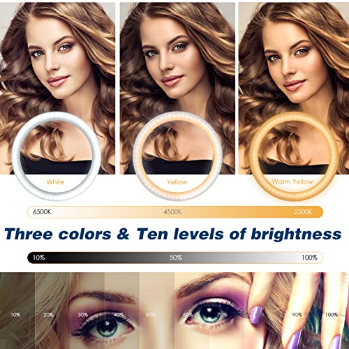 💡【3 Farben Mode & 10 Helligkeit】 KIBTOY Ringleuchte mit 3 Farblichtart ausgelegt: Weiß, warmem Weiß und warmem Gelb, und jeder Modus hat 10 Helligkeit einstellbar, genug um Ihren unterschiedlichen Bedürfnissen gerecht zu werden, perfekt zum Schminken, Fotografieren, Videos machen, Bücher lesen und Live – Streaming usw.