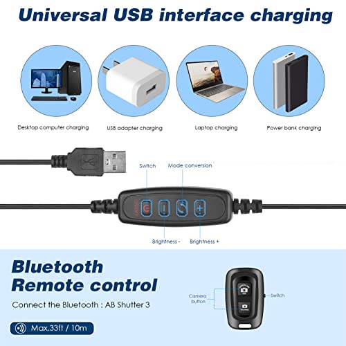 💡【USB Powered & Remote Shutter】 USB-betriebene Geräte wie Computer, Laptops, mobile Stromversorgung, Ladegeräte für Mobiltelefone können die Stromquelle für das Ring Licht sein. Ausgestattet mit einer empfindlichen Fernbedienung, Ihre iOS- / Android-Smartphones können Bilder per Video aufnehmen und Videos per Fernauslöser aufnehmen.