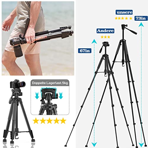 【Stabiles und Tragbar Stativ】Hochwertiges Aluminium max Lastgewicht ist 5 kg, bietet extrem hohe Haltbarkeit und Stabilität. stativ max Höhe ist 185 cm, gefaltete größe ist 44cm, kompakte Größe, um Ihren Rucksack passen.