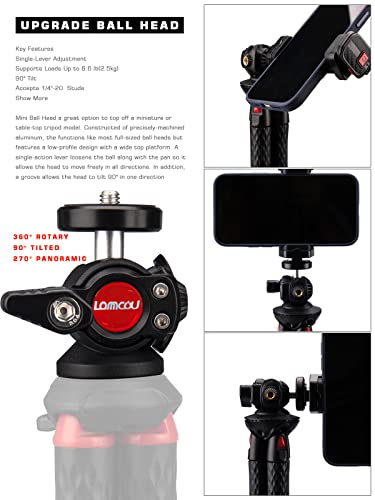 ✅【360 KUGELKOPF】 Lammcou Kamera Stativ mit 360 Grad schwenkbarem Kugelkopf ermöglicht die Einstellung für Mehrwinkelaufnahmen.