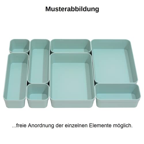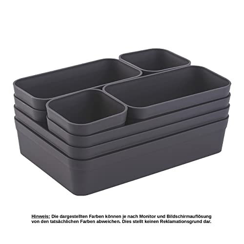 Schubladen Organizer Set (8 Boxen, 4 verschiedene Größen) in der Farbe anthrazit Durch die individuelle Anordnung passend für alle gängigen Schubladen, Kommoden, Schränke usw.
