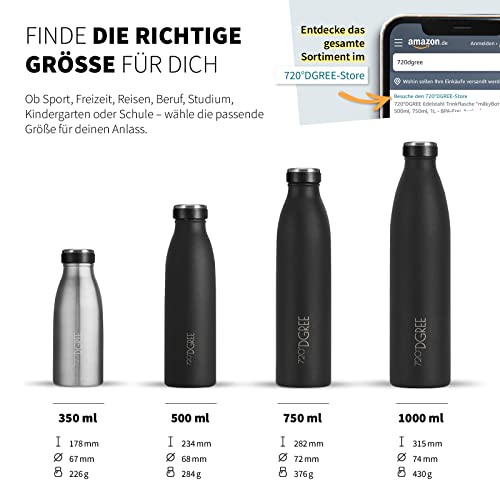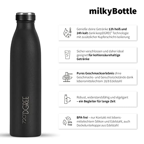 720°DGREE Edelstahl Trinkflasche “milkyBottle” – 350ml, 500ml, 750ml, 1L – BPA-Frei, Auslaufsicher, Kohlensäure geeignet…
