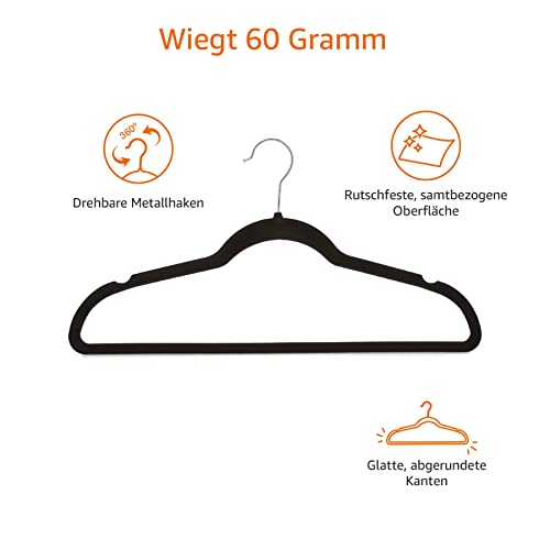 Set à 30 Kleiderbügel: Nicht abfärbende, schwarze Amazon Basics Kleiderbügel mit Schulterkerben und drehbaren Metallhaken
