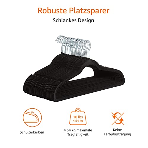 Details: Amazon Basics Schmale und Rutschfeste Kleiderbügel für Hemden/Anzug/Kostüm – 30er-Pack, Schwarz