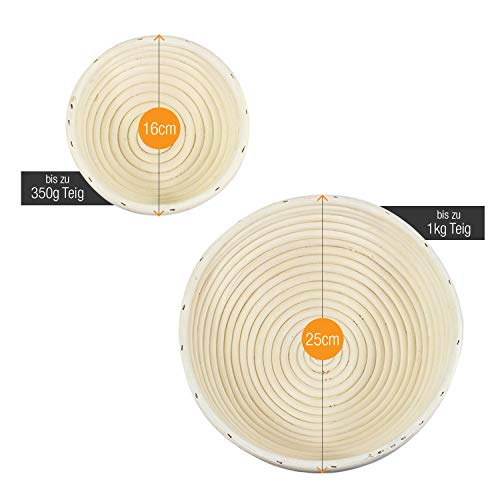 WEITERE HINWEISE – Da es sich bei Gär-Körbchen um natürliche, von Hand gefertigte Produkte handelt, kann die tatsächliche Größe um 0,5-1cm von den Angaben abweichen. Der Lieferumfang beinhaltet neben dem Brot Korb auch einen Beileger mit Rezeptideen und Tipps rund ums Thema Brotbacken.