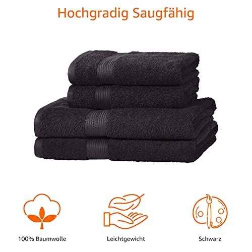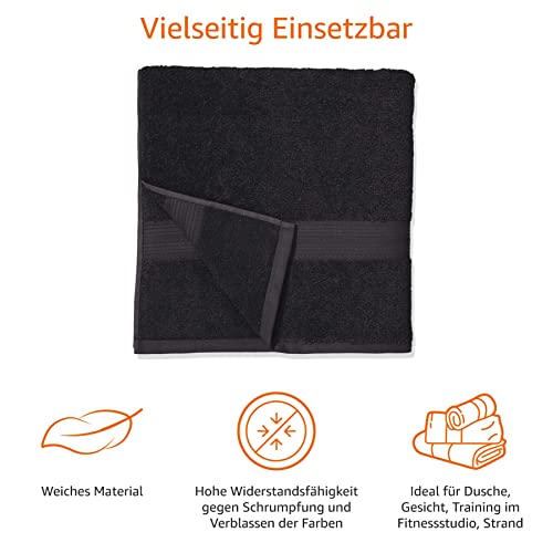 Details: Amazon Basics Handtuch-Set, ausbleichsicher, 2 Badetücher und 4 Handtücher, schwarz, 100 Prozent Baumwolle 500g/m²
