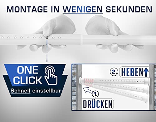Details: MEISENBERG Rostfreie Gardinenstange ohne Bohren 210-260cm, Ø32mm Weiß belastbare Klemmstange zum Ausziehen…
